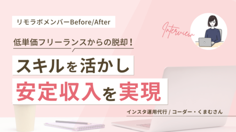 在宅だとモチベーションの管理やお客様とのやりとりなど、不安なことだらけでした。ですがリモラボはスキル習得だけでなく、仕事獲得後のサポートもあるので、なんでも聞ける環境はとても強い味方です。