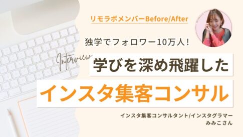 そんなとき、こもりんのX(旧Twitter)企画をきっかけに、リモラボの存在やインスタ運用代行の仕事を知ったんです。インスタ運用代行で働き方を変えよう!と思い、リモラボに参加しました。