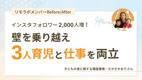 今回の記事では双子+3歳の子育て中でも在宅ワークで収入15倍になった、元ヨガ講師のしまさんにインタビューしました。子育てや転勤妻の働き方など、多くの壁を抱えていた彼女がリモラボへの参加をきっかけに、理想の生き方を実現した背景に迫ります。