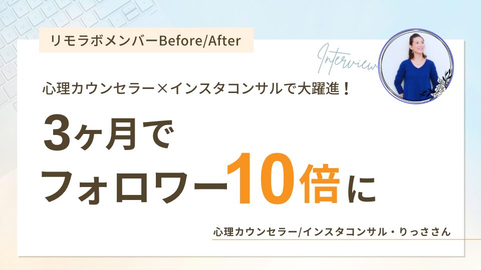 以前はSNS集客に悩みを抱えていた彼女。リモラボCampへの参加をきっかけに、アカウントのフォロワー数が10倍になった背景に迫ります。