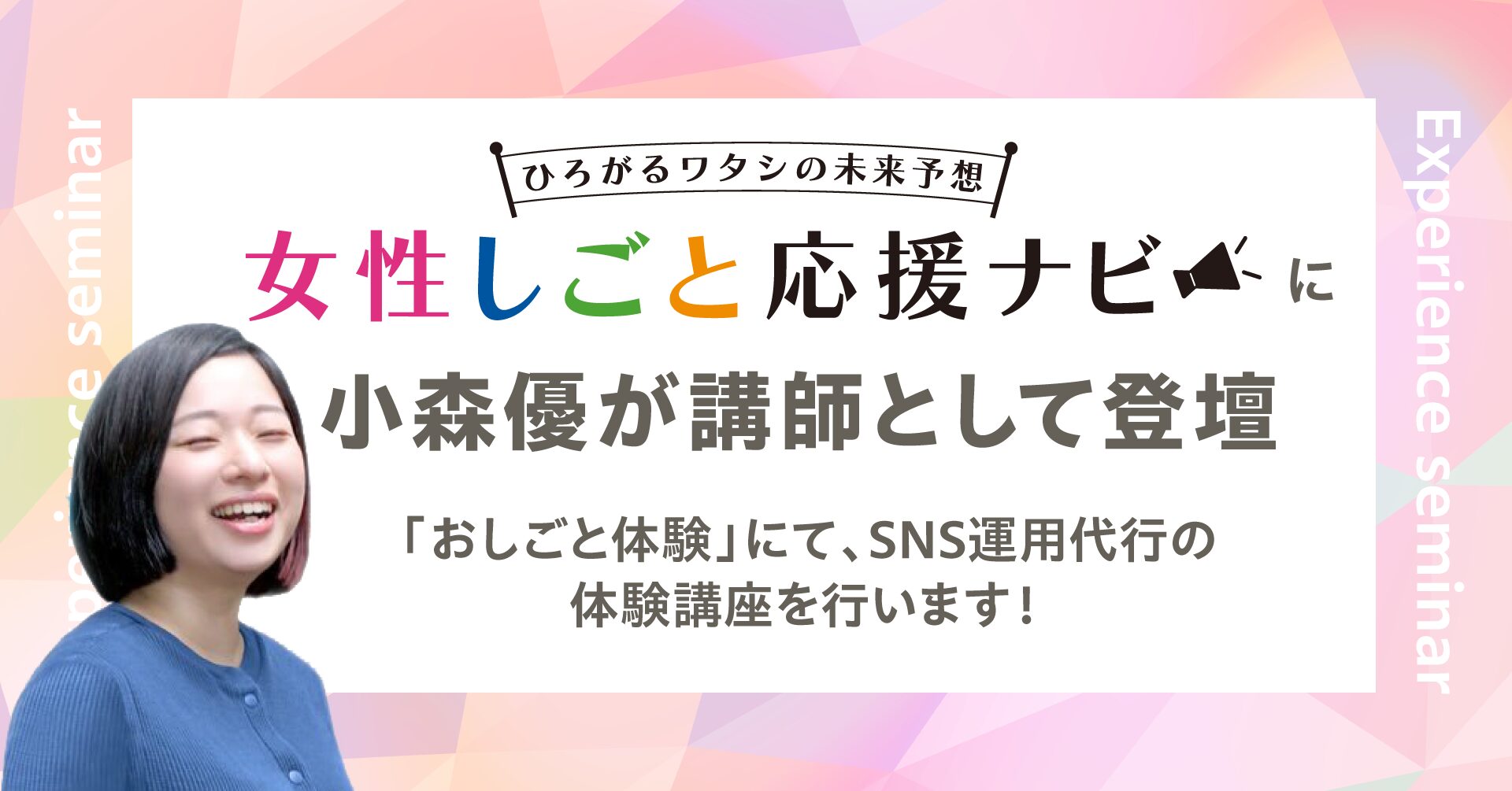 そんな方へ向けて、SNS運用代行の体験講座講師として小森優が登壇いたします。