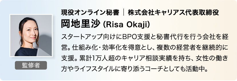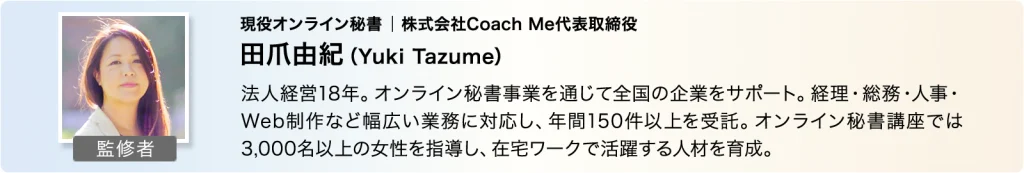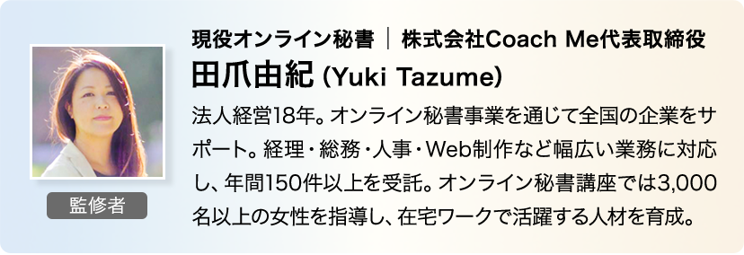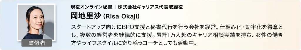 オンライン秘書についてもっと知りたい方は、ぜひ「オンライン秘書とは?業界歴10年以上のオンライン秘書が語った仕事内容のリアル」を読んでみてくださいね。