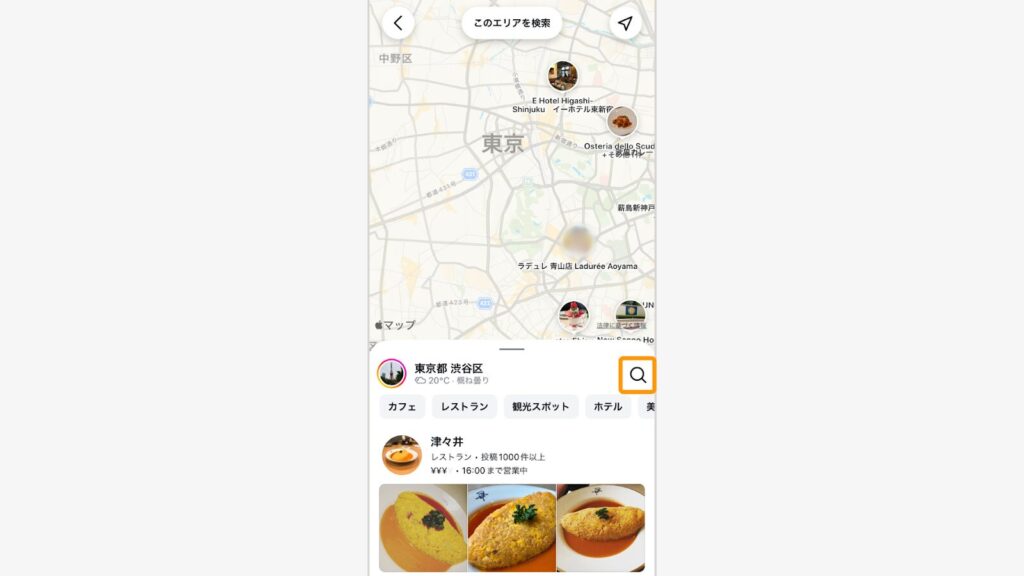 発見タブの右上にある地図検索を使えば、地域ごとにどんな投稿が見られているかを知ることができます。