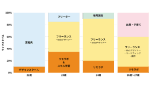 リモラボは、スキルや仕事だけでなく、日々の時間の使い方や暮らし方を見つめ直すきっかけにもなっています。年齢ごとに異なるリモメンバーの傾向を、グラフでご紹介します。